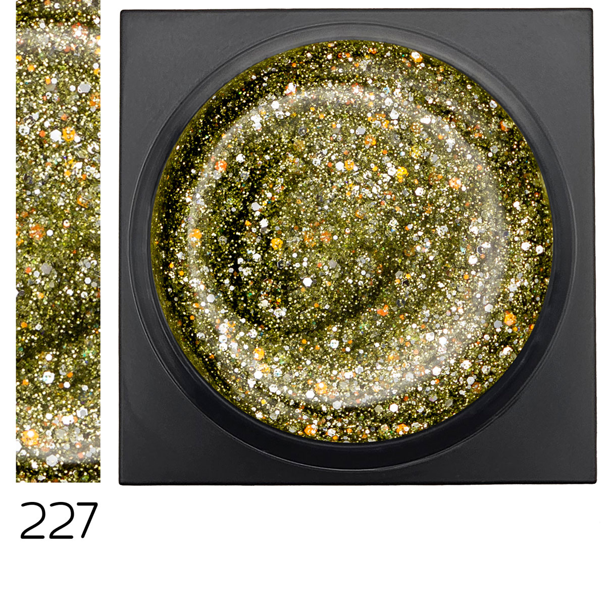 Das Olymp Farbgel Euthenia zeigt einen intensiven, satten Olivton, der mit funkelnden Glitzerpartikeln versehen ist. Dieser elegante Farbton vereint eine subtile, erdige Tiefe mit einem dezenten, schimmernden Effekt.
